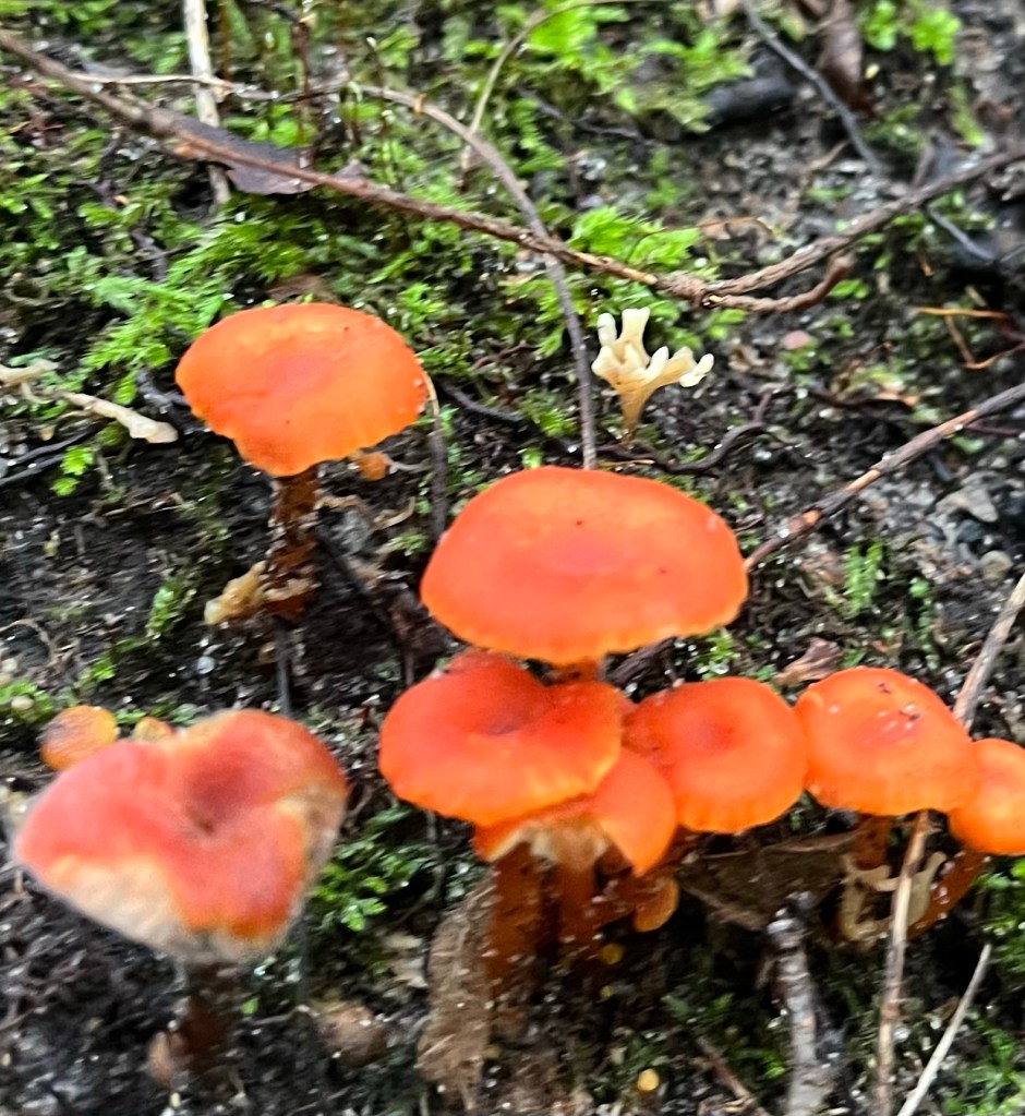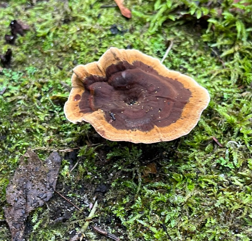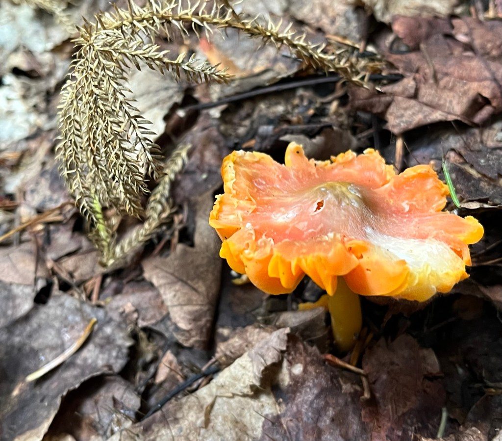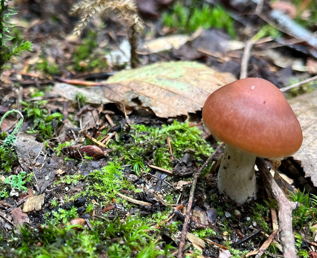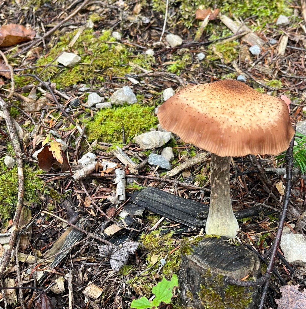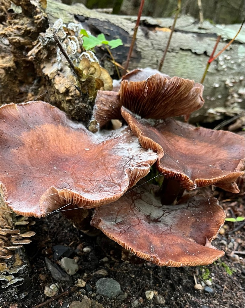 I find mushrooms fascinating, and there were lots of different kinds growing in the Michigan woods. Professional photographers and golfers have their “money shots“. I have my “mushroom shots“.