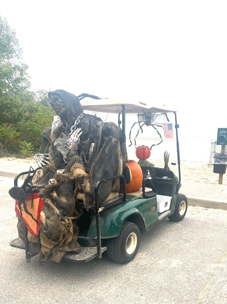 Halloween seems to be a big deal especially at the Harrisville State Park. They have decorations everywhere and here is one of the Park Rangers carts.