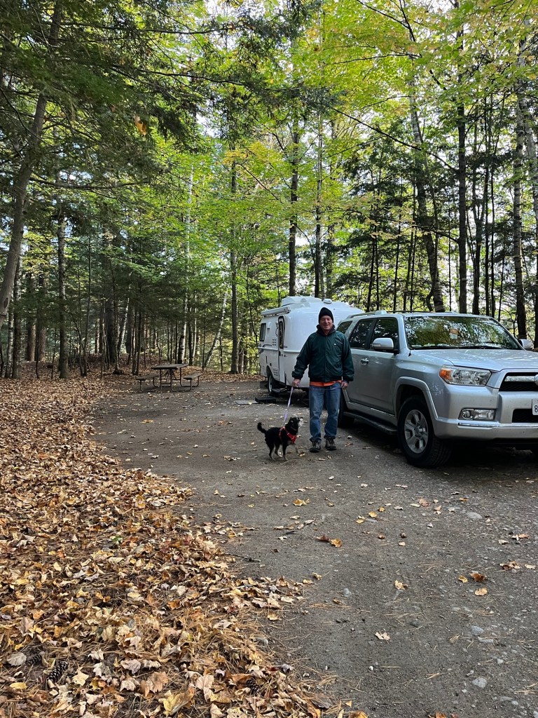 We are camped at Little River Campground in Waterbury. Another beautiful campsite in the fall forest on a lake. Vermont has been Steve’s favorite so far.