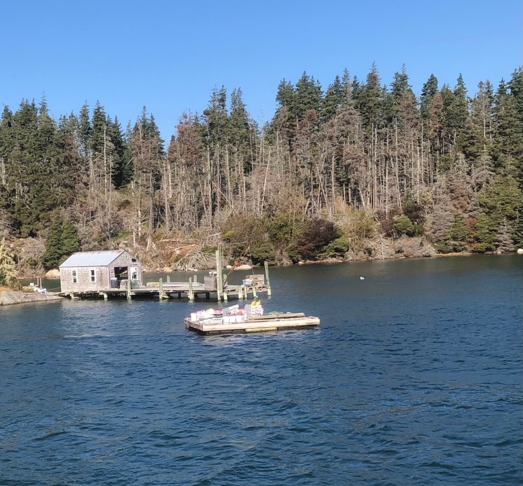 We decided to drive over an hour this morning to Stonington to take the ferry out to Isla Au Haut off the coast. Stonington is a charming small fishing village. A great majority of the residents are involved in the lobster business. The surface of the harbor waters are dotted with hundreds of colorful lobster trap buoys.