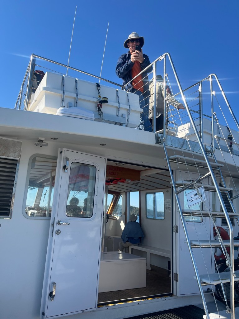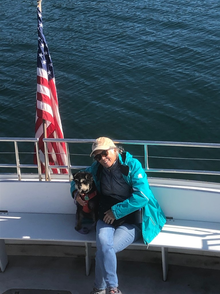Great day for a ferry ride — sunny, clear, and calm water. We just did the 2 1/2 hour round-trip. Jasper was allowed to accompany us. Great views everywhere. Some of the scenery reminded us of the San Juan Islands in Washington. In Steve’s opinion more spectacular than the San Juans.