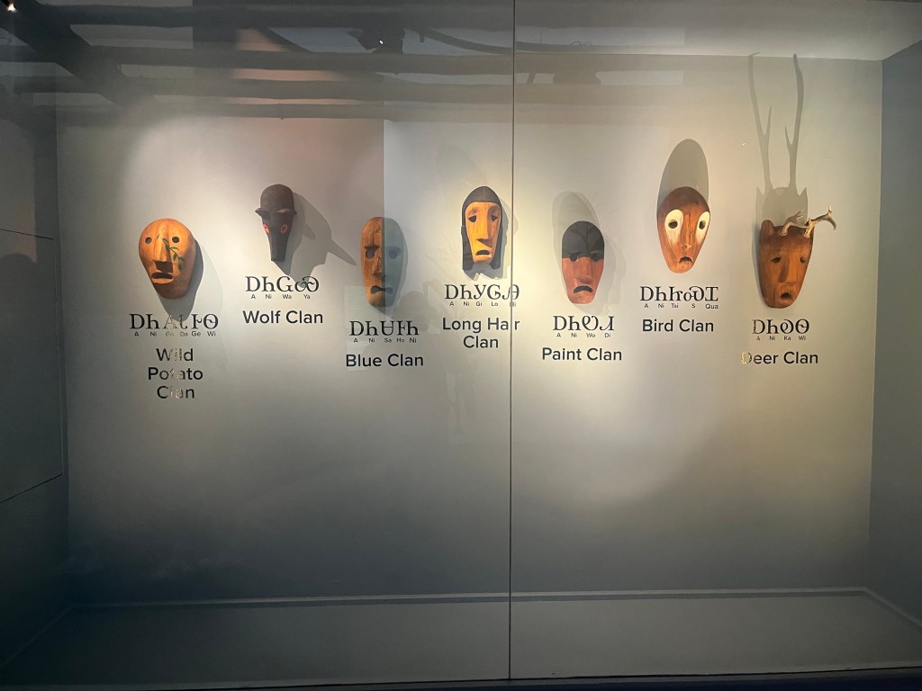 On the east side of GSMNP is the town of Cherokee, North Carolina. It is the center of the Cherokee Nation Reservation. It appears to be a big tourist site much like Gatlinburg, but smaller and with a different feel. We had a great lunch at a local Cherokee owned café and then a stop at The Museum of the Cherokee People. A nice museum with lots of information on the history of the Cherokee nation.